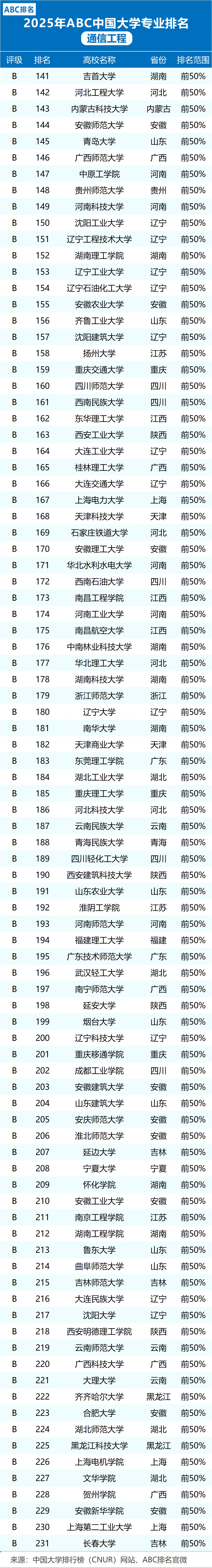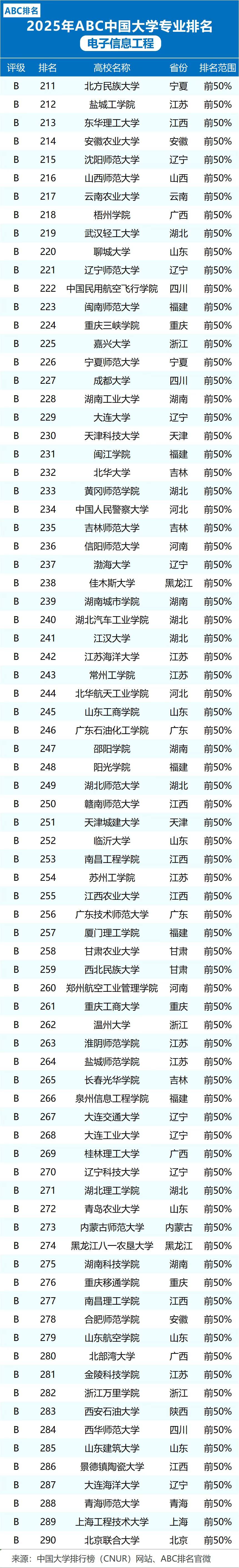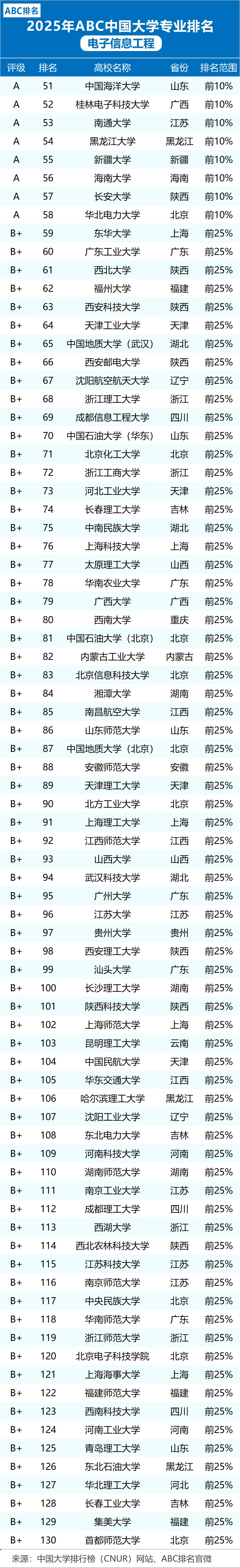 2025中国大学排行榜来啦,附通信工程、电子信息工程等专业大学情况
