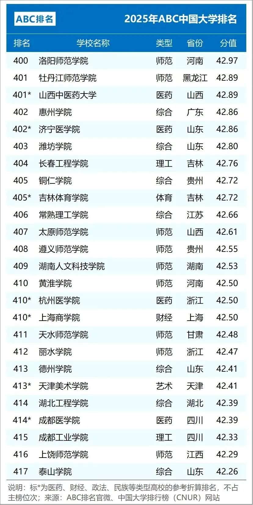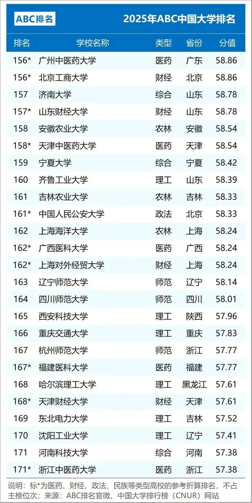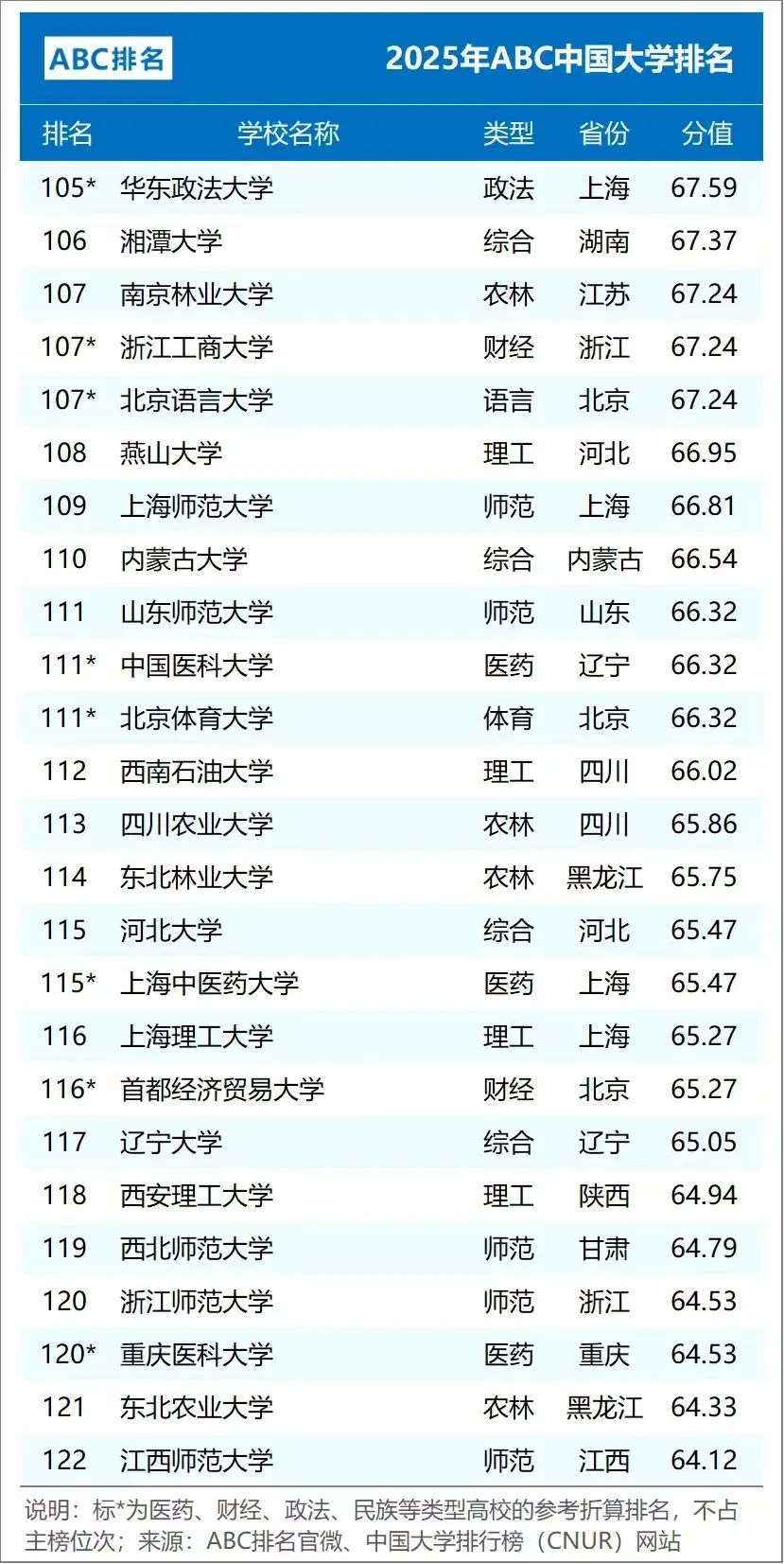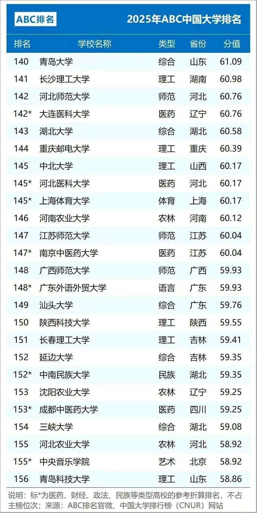 2025年ABC中国大学排名(公办)