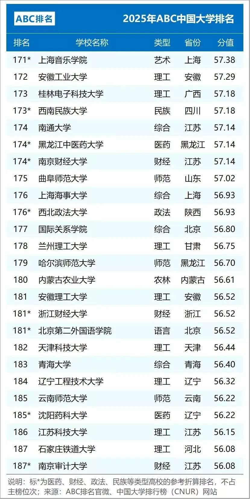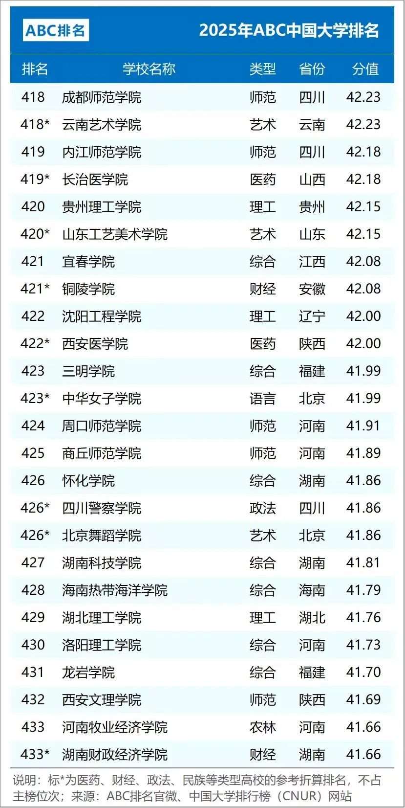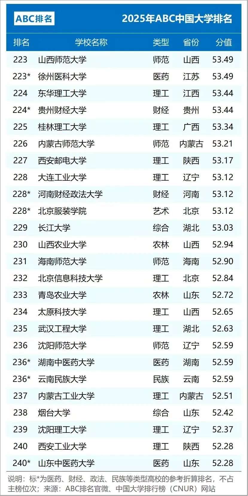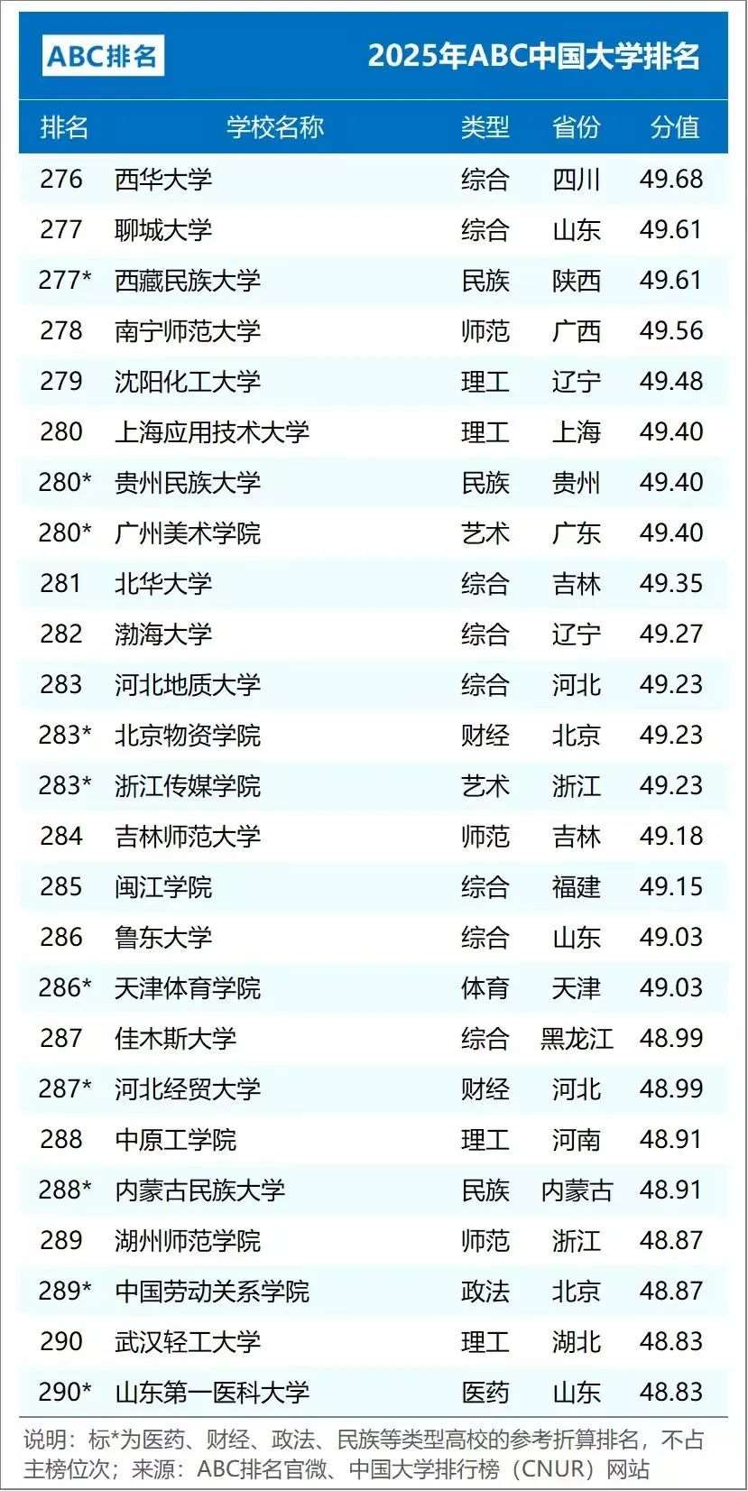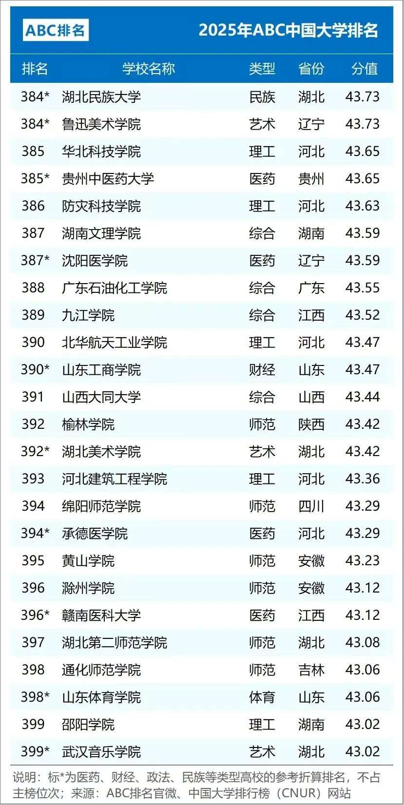 2025年ABC中国大学排名(公办)