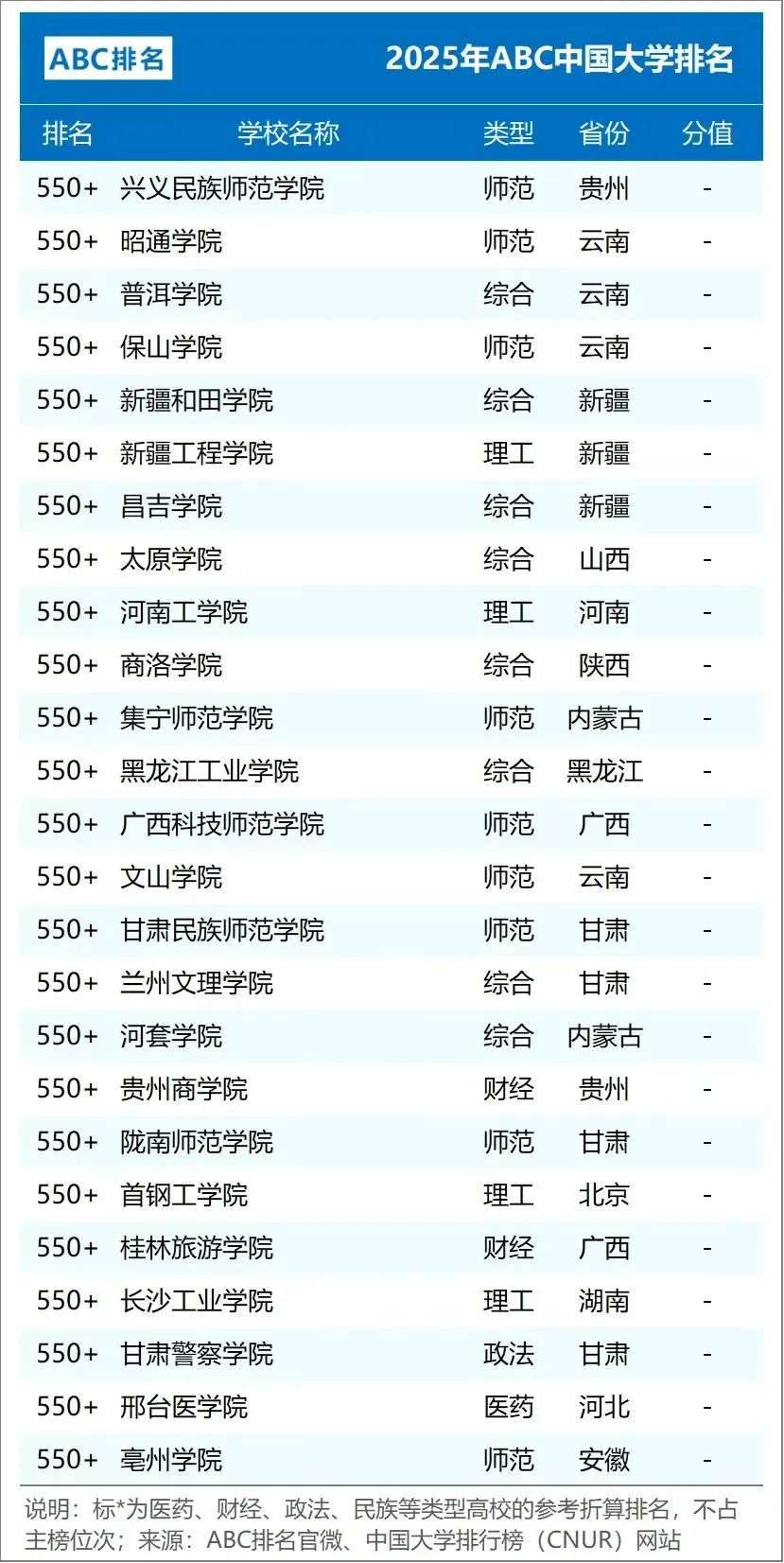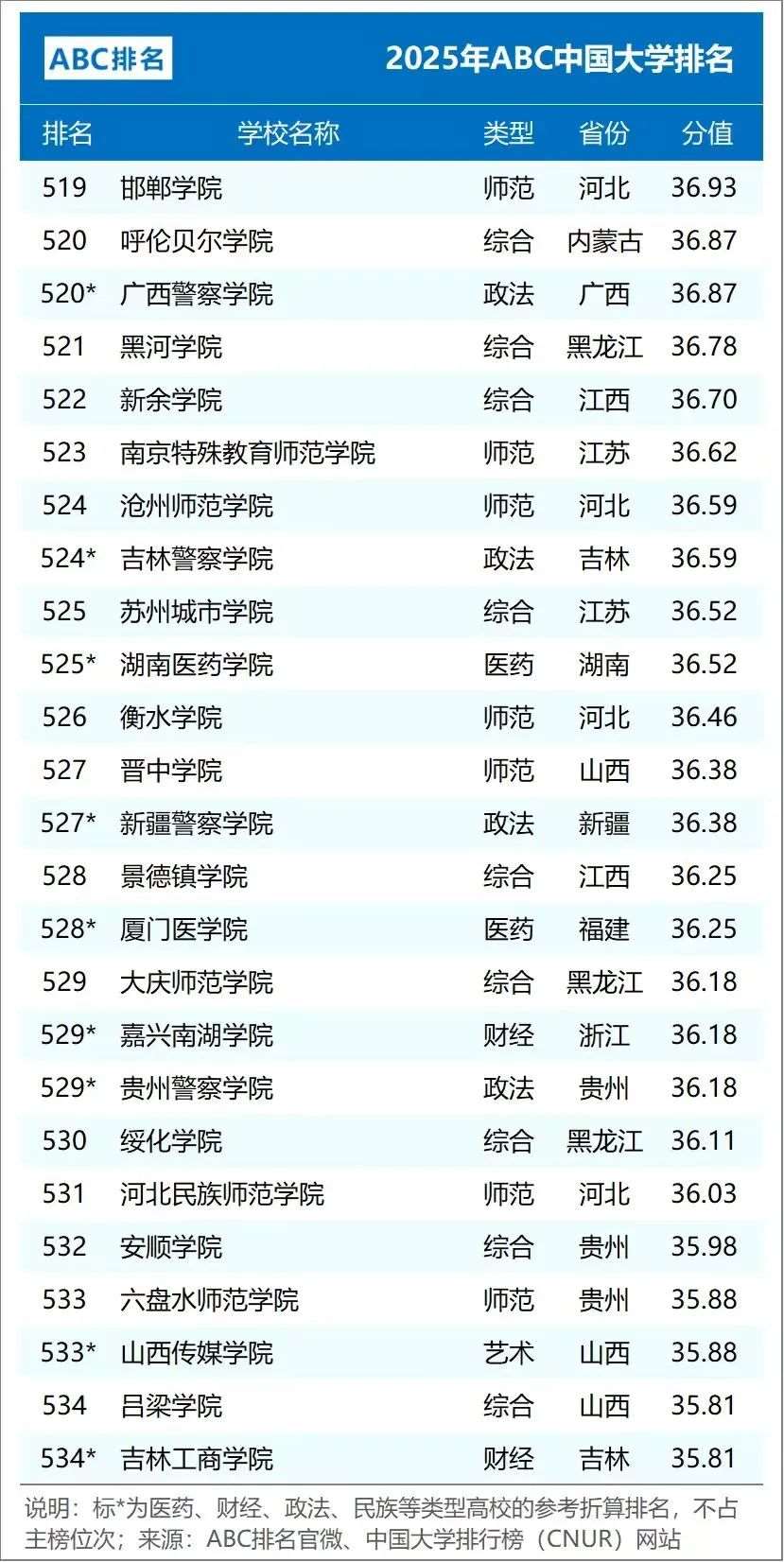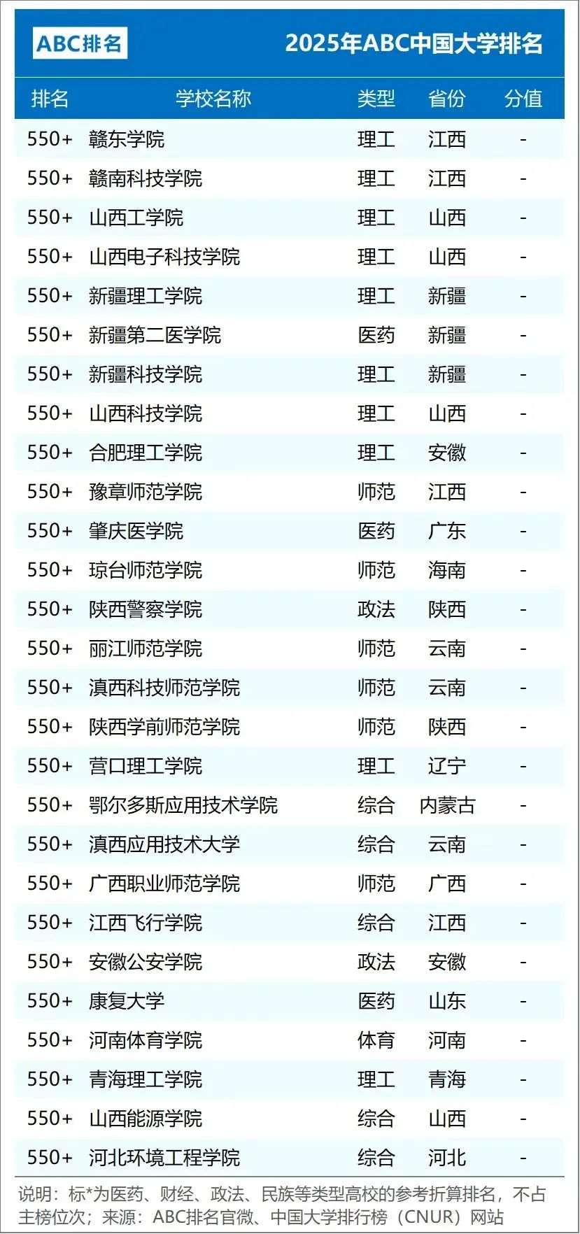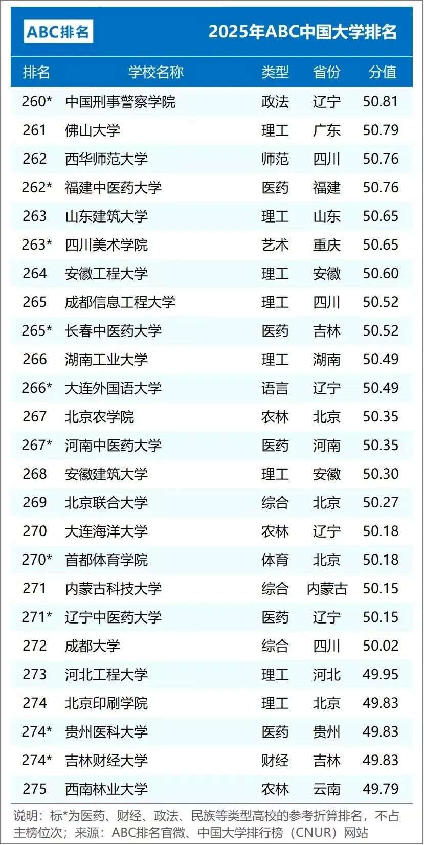2025年ABC中国大学排名(公办)