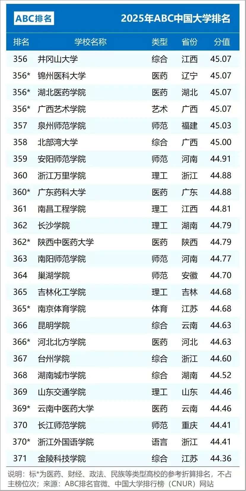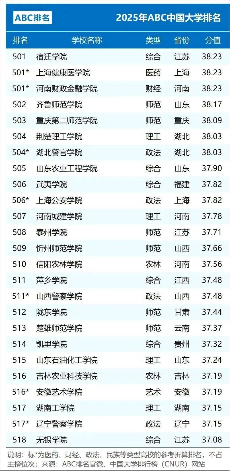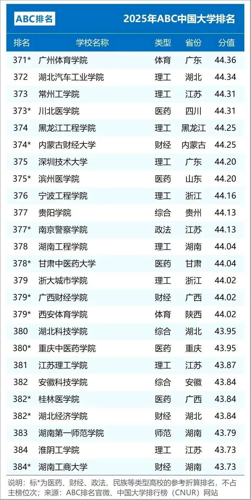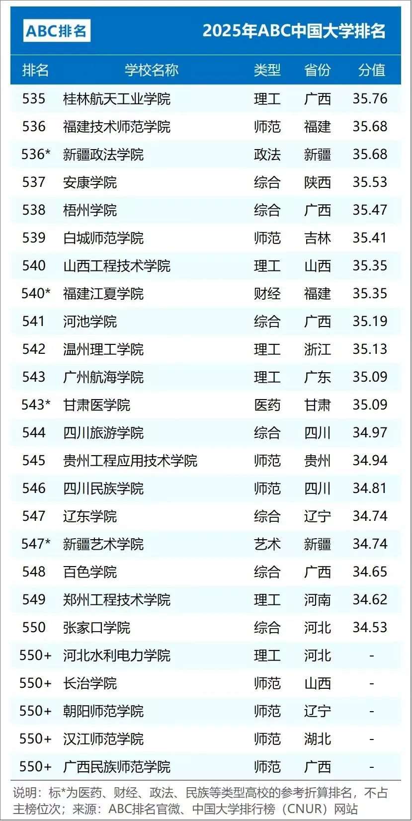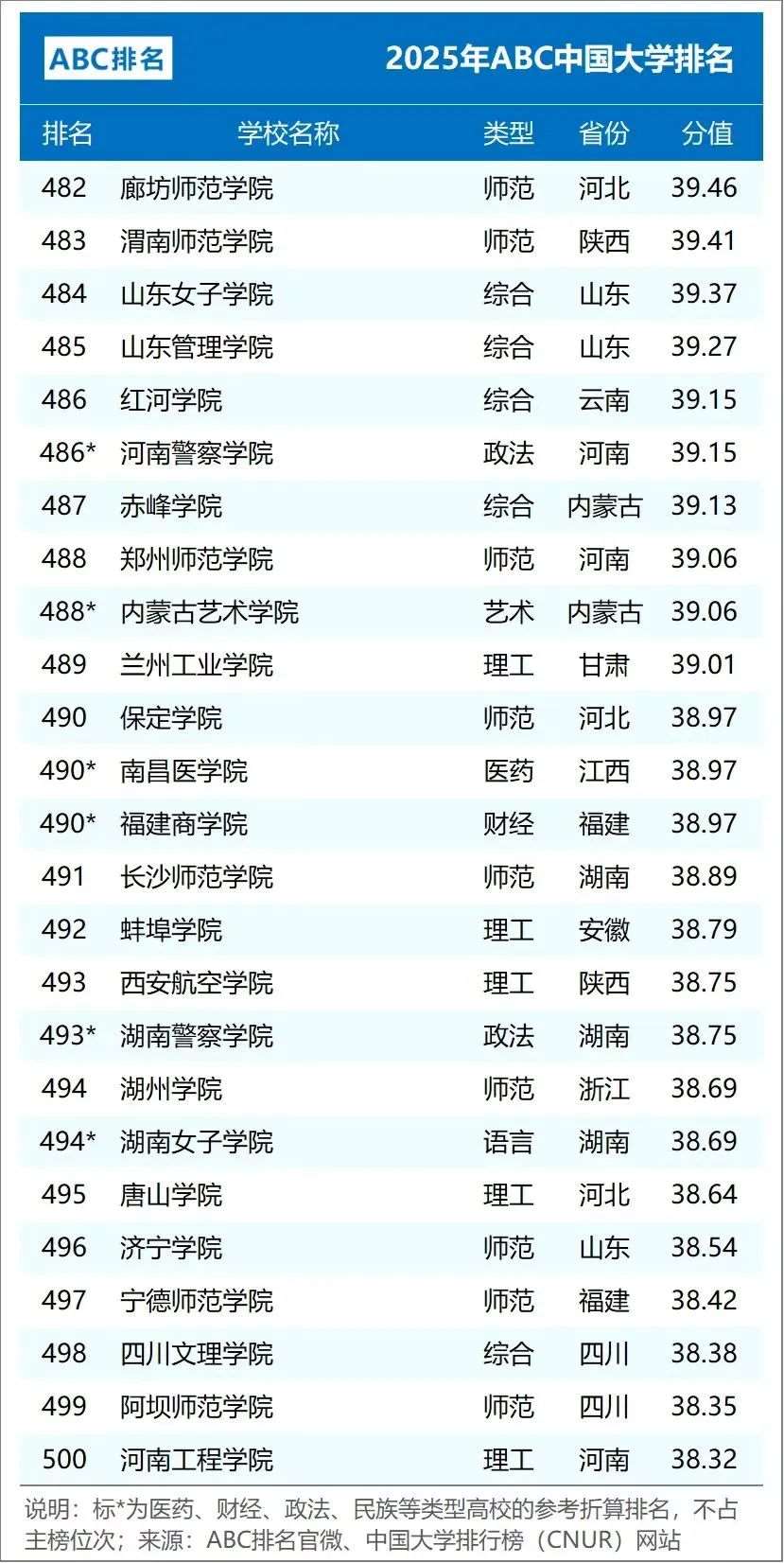 2025年ABC中国大学排名(公办)
