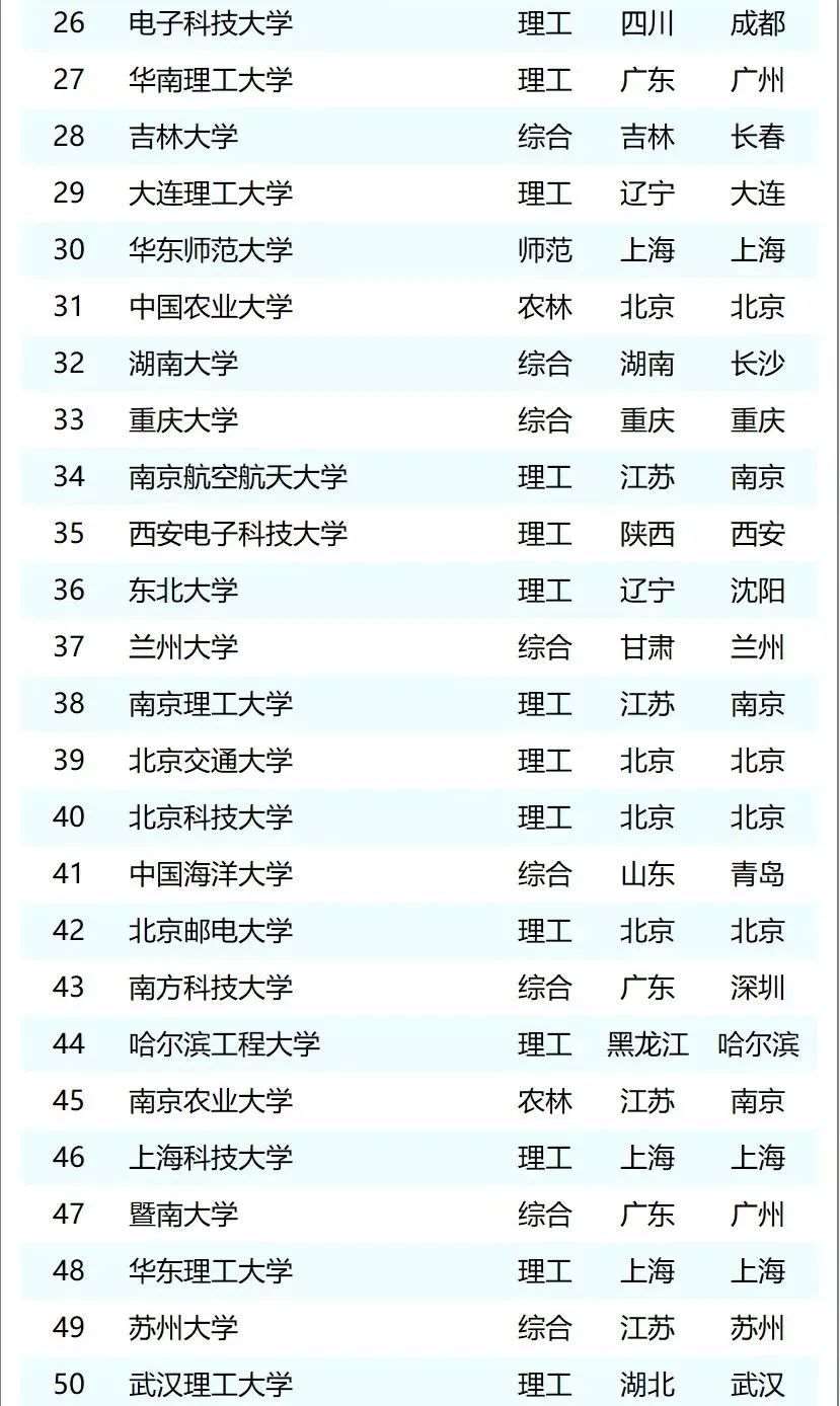 📣 新一年的“中国大学排行榜”又发布了!先看一下排名情况: