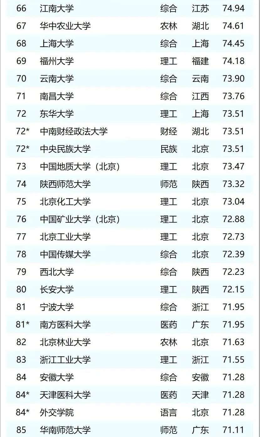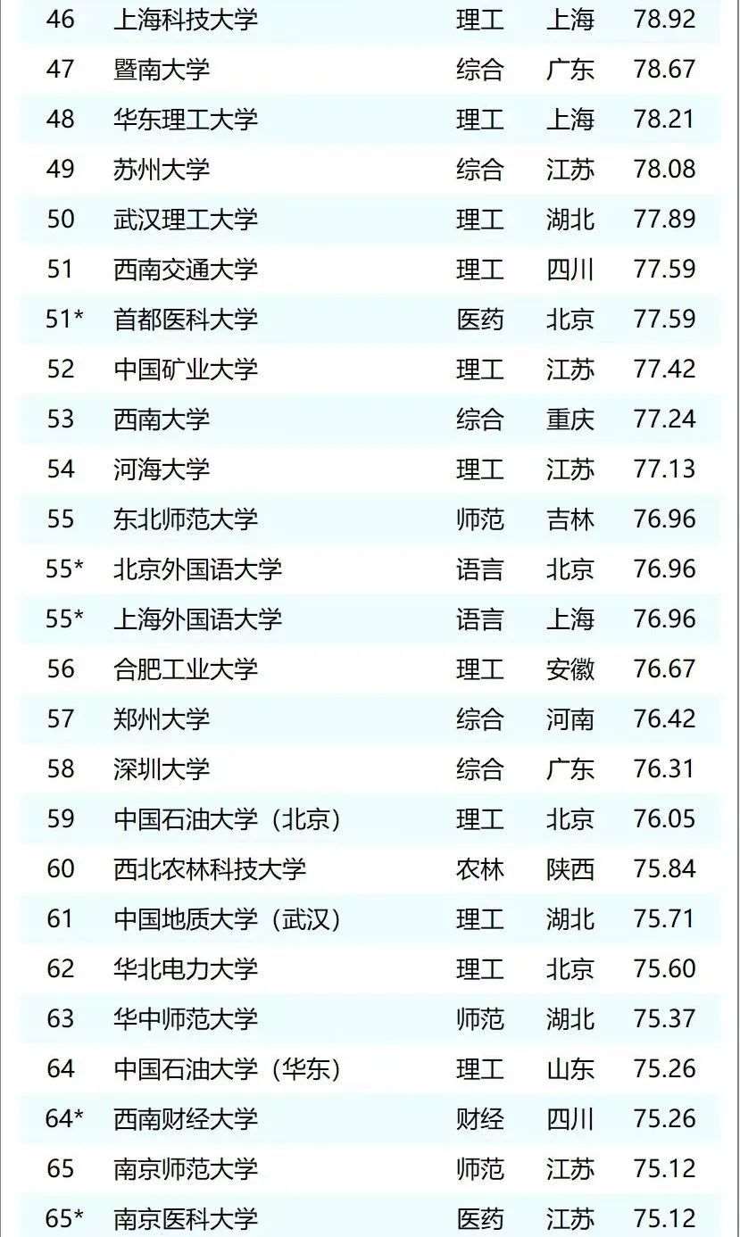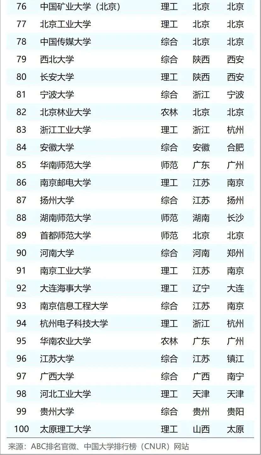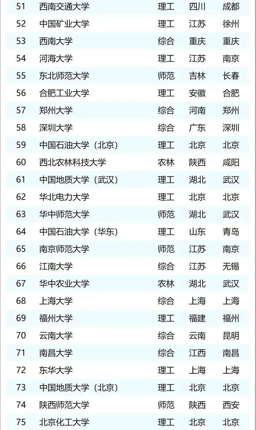 最新中国大学排行榜来啦