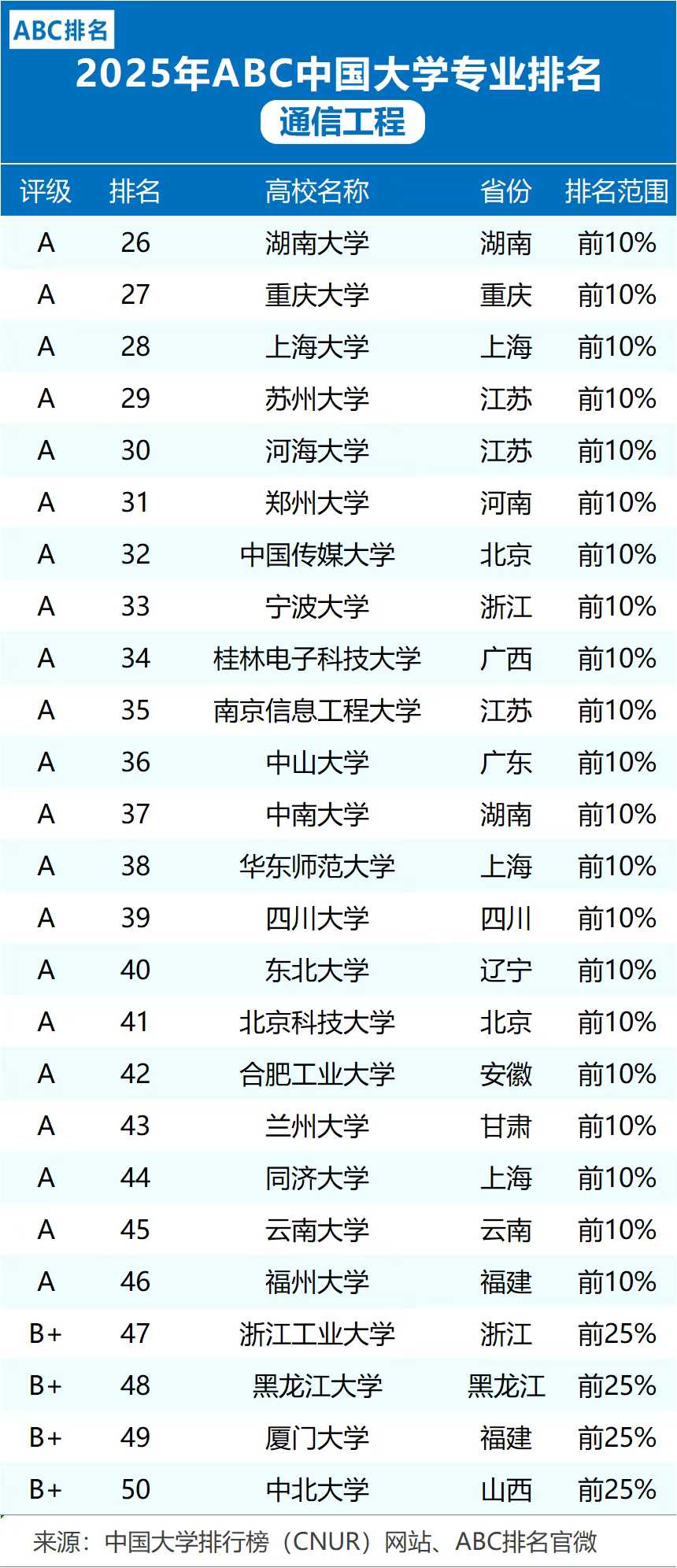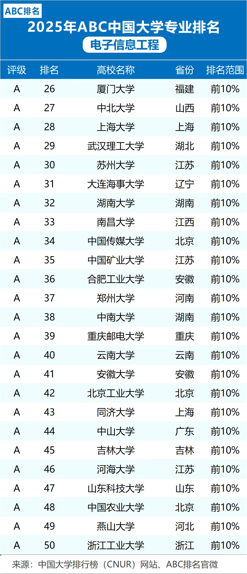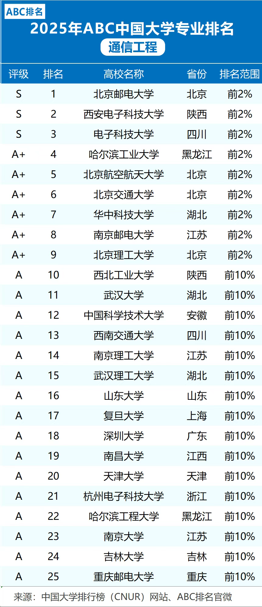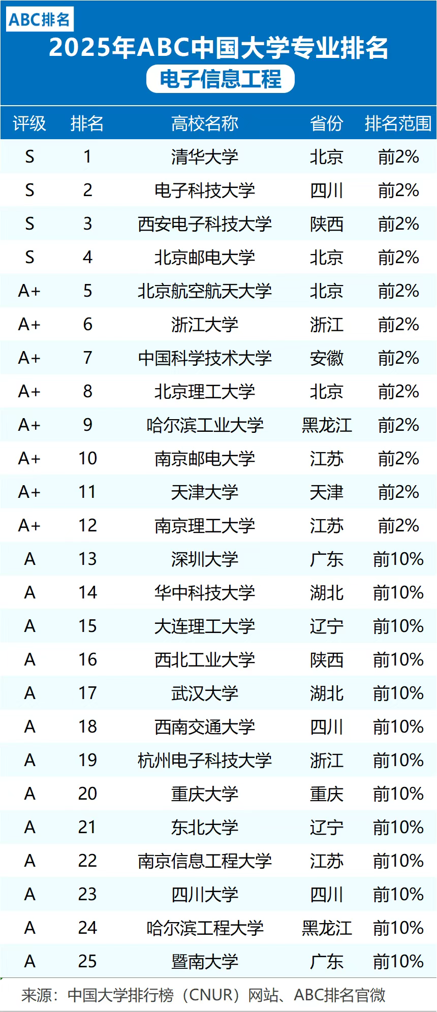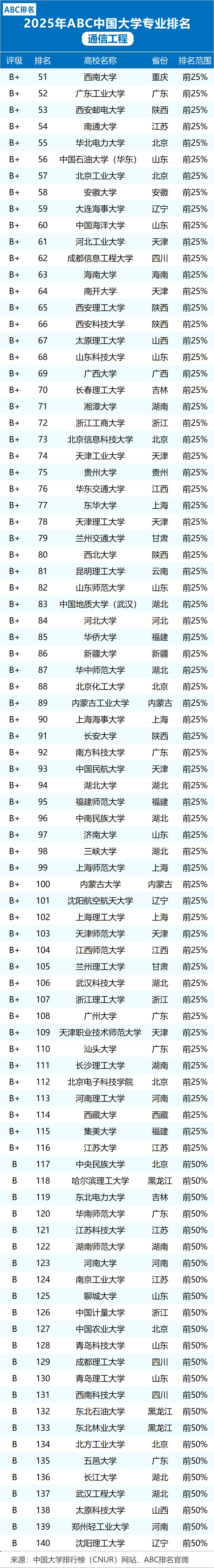 当前位置: 首页 资讯活动 2025中国大学排行榜来啦,附通信工程、电子信息工程等专业大学情况