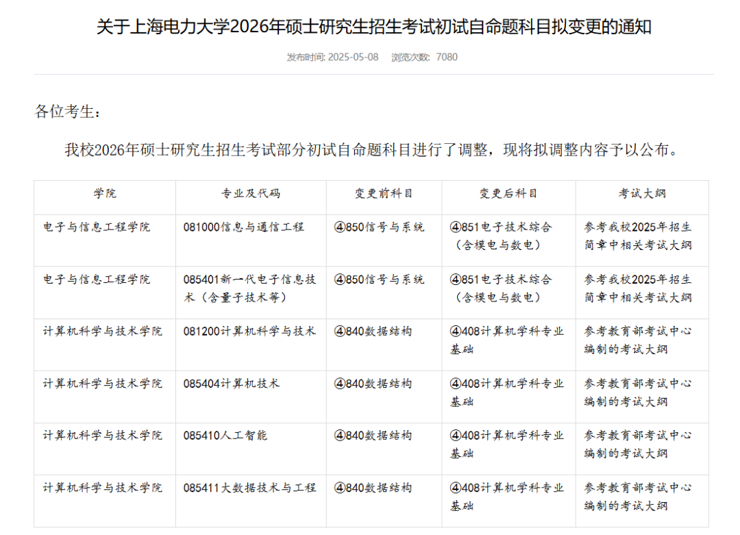 计算机科学学院所有专业,原856数据结构与程序设计调整为408计算机专业基础。