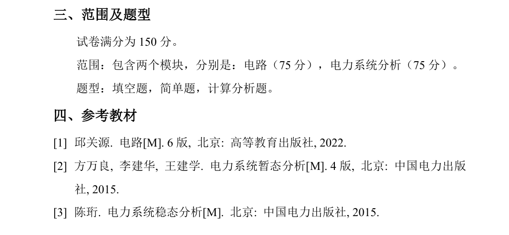 ①821科目调整为电路与电力系统分析:范围包含两个模块,分别是:电路(75分),电力系统分析(75分)