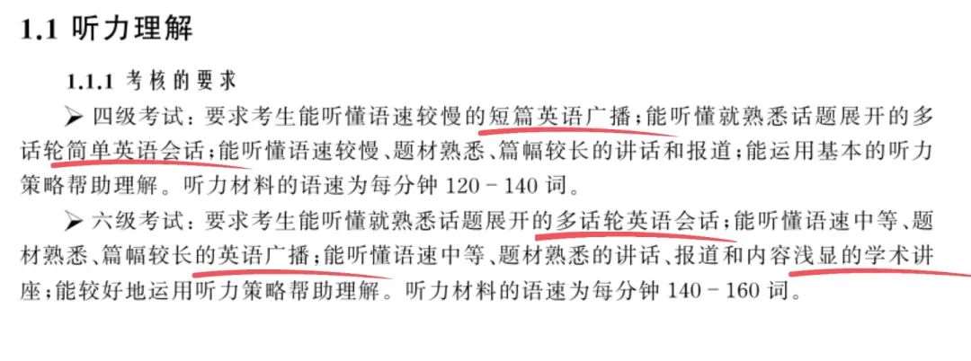 我们能看到,考纲里四六级的技能要求是不同的。我们看看其中的相同点(即重复语句):