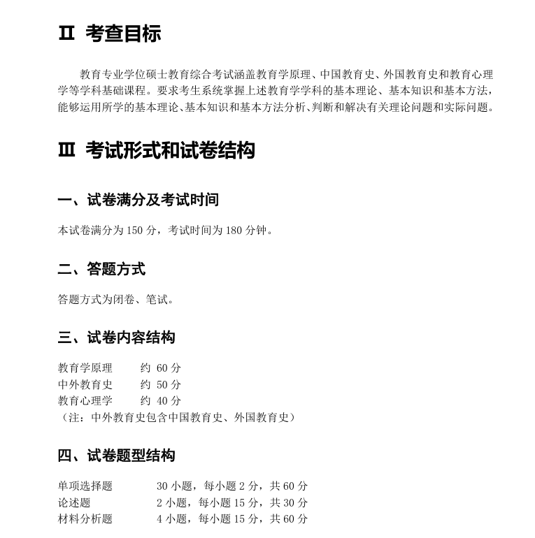 大纲中主要规定了科目的考察目标、考试形式、试卷结构、考察内容等。