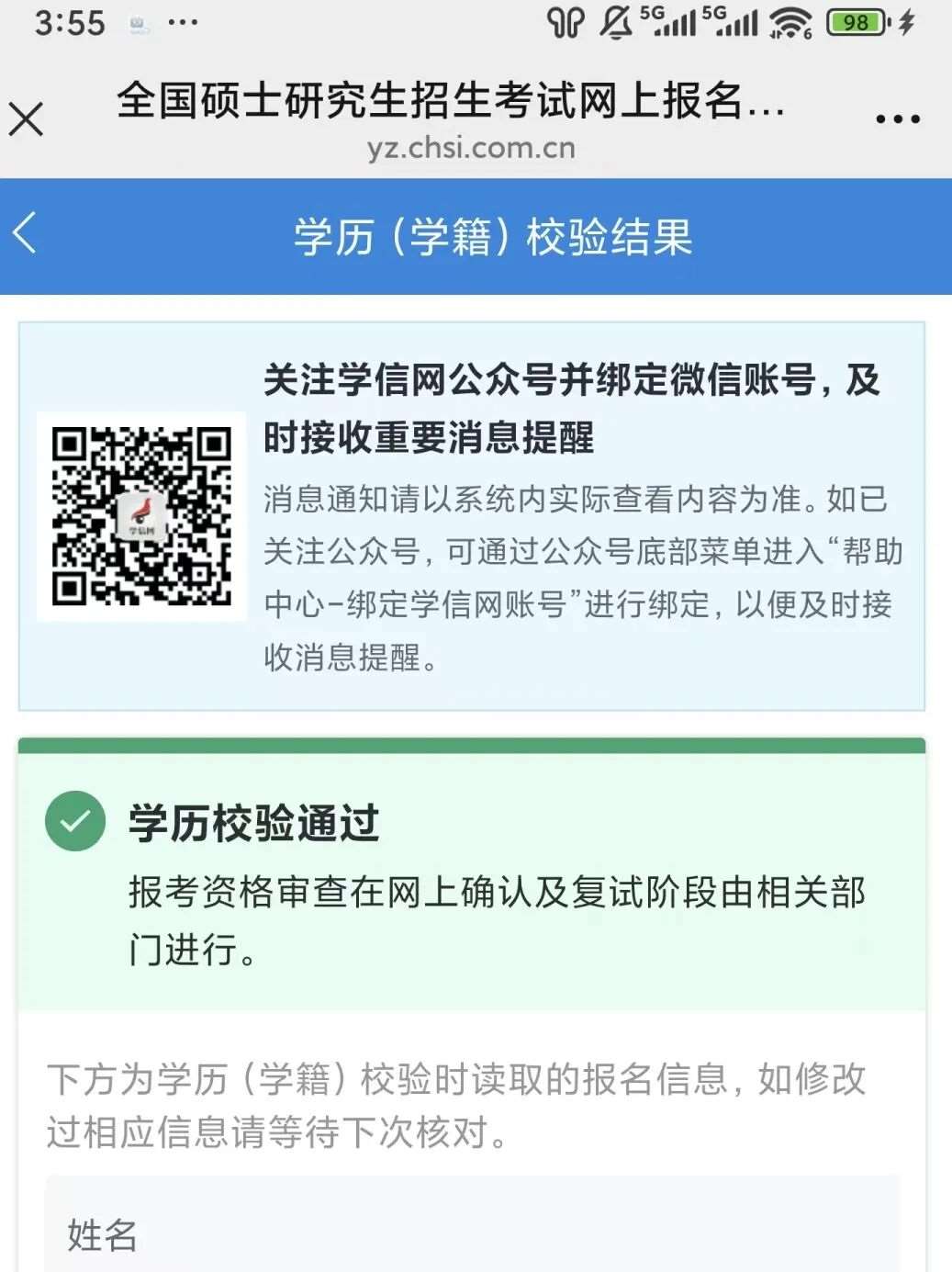 🆙学信网账号:确认自己的学信网账号状态,同时登录学信档案核实学历(学籍)信息是否正确,学籍学历验证是否无误,手机号码是否为当前正常使用的号码。用本人微信绑定自己的学信网账号,便于接收研考通知提醒。