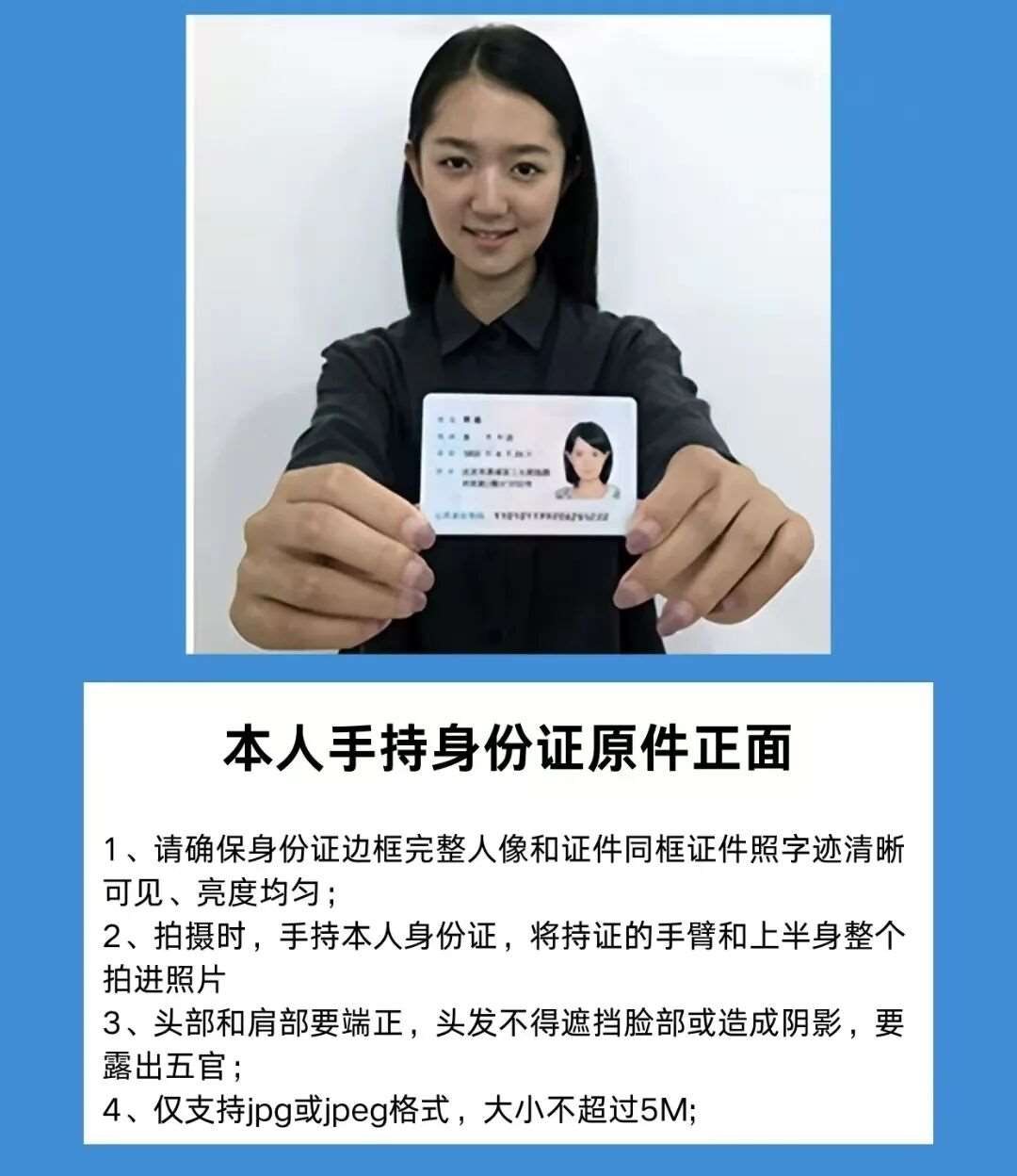 ▶ 本人手持身份证电子照片:显示持证手臂和上半身,身份证头像面朝前,信息完整。