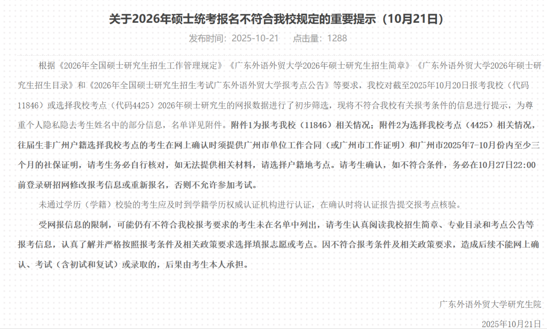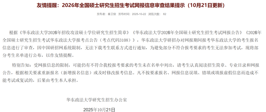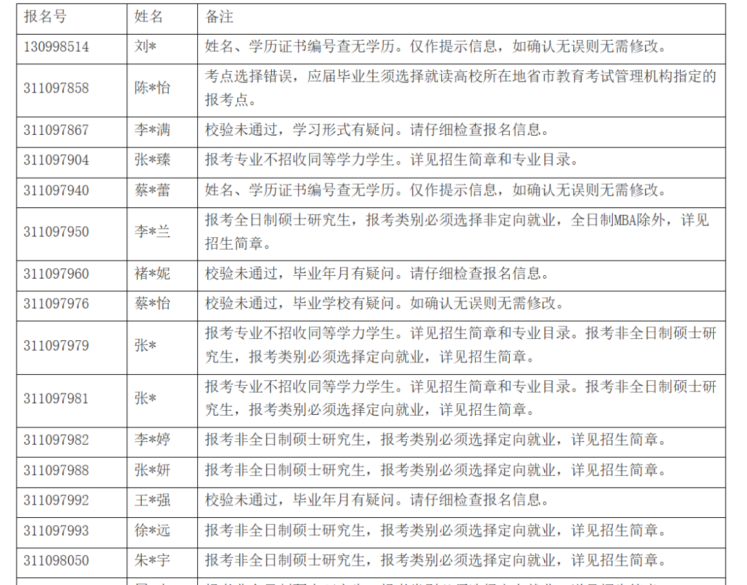 报名动态:提醒新一批不合格名单已发布