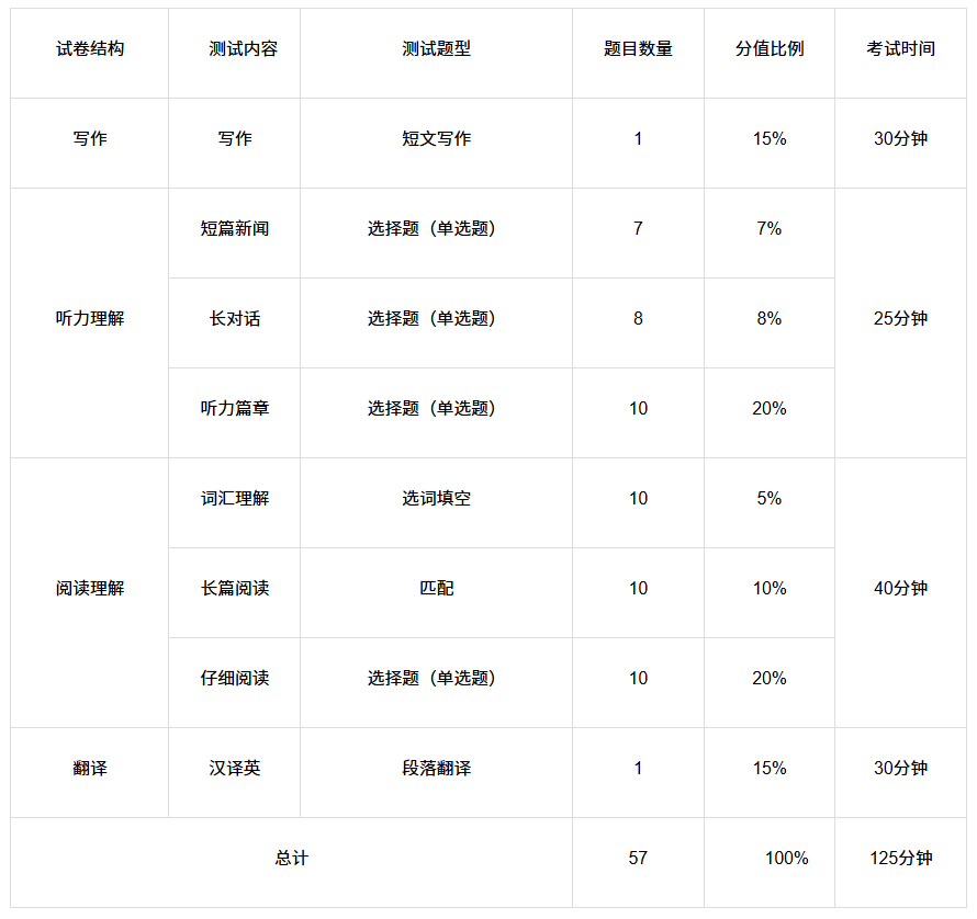 短文朗读:考生准备45秒后朗读一篇120词左右的短文(考试时间约2分钟,两位考生同步进行)