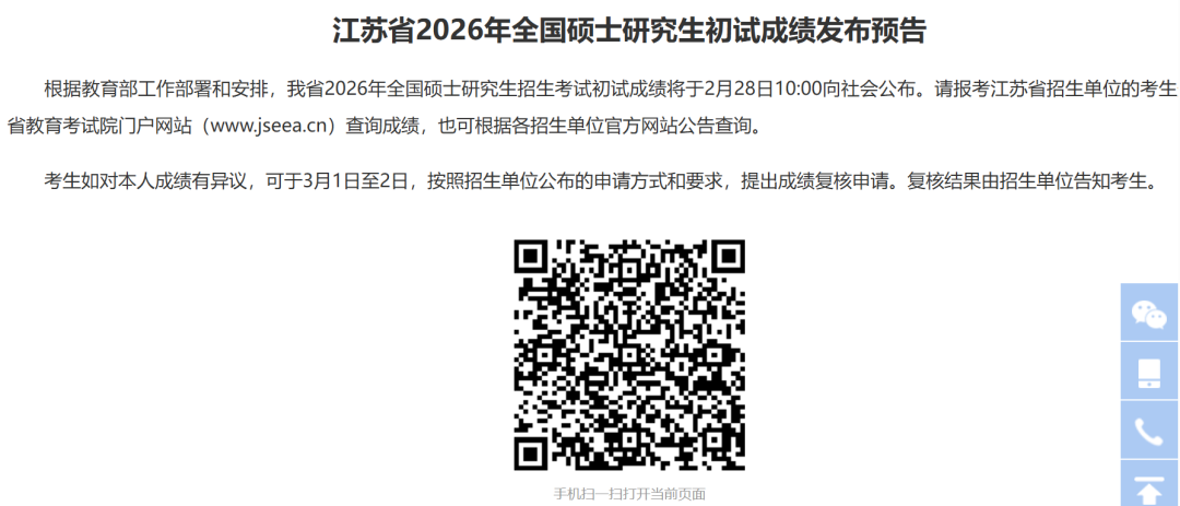 江苏省教育考试院:2026年全国硕士研究生招生考试初试*将于2月28日10:00向社会公布