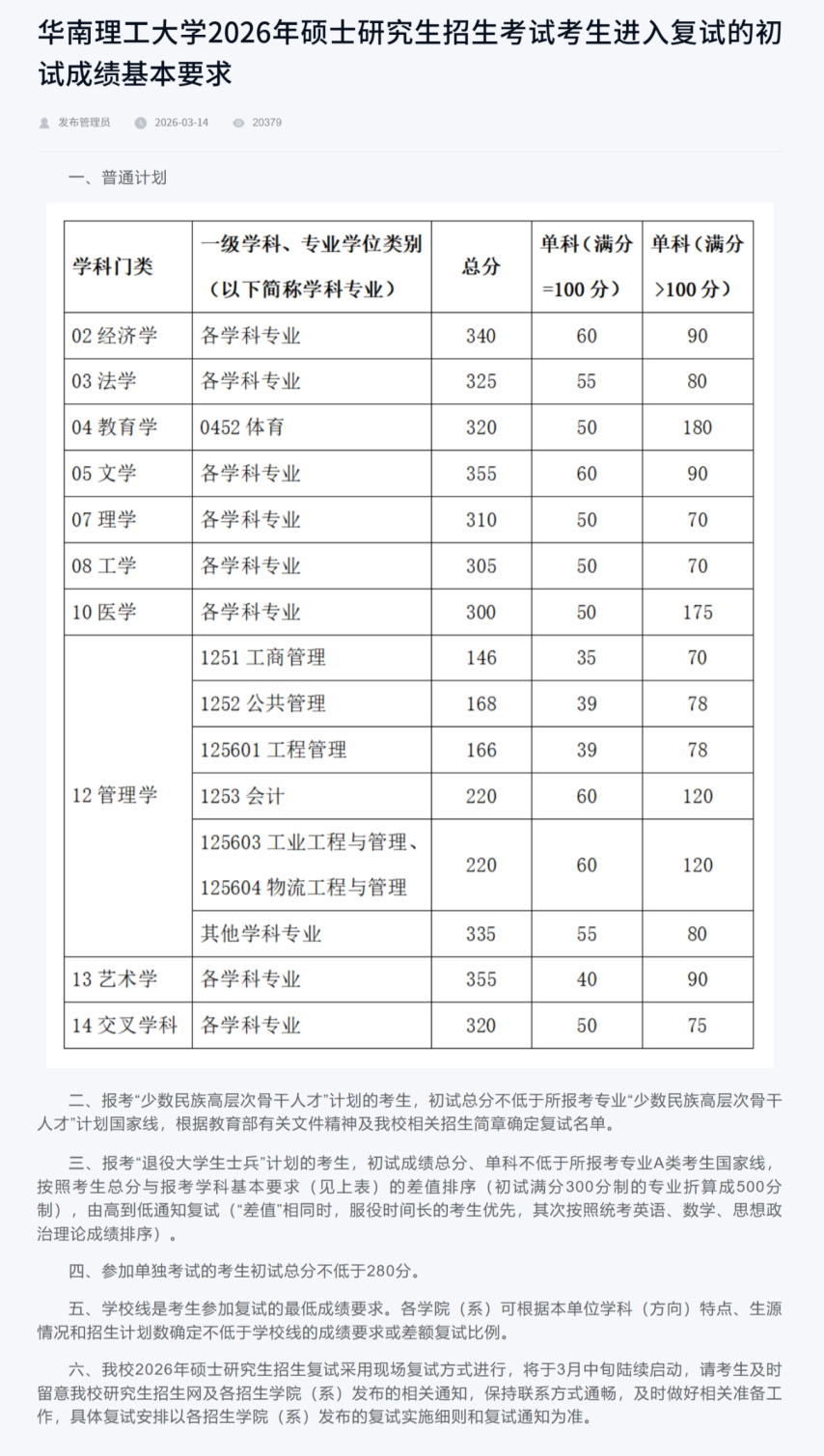 华南理工大学复试分数线波动较小,工商管理学院发布招生计划,复试时间为3月22日