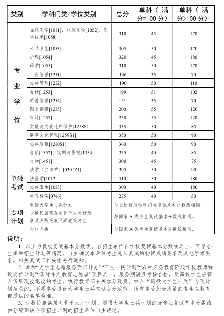 分数情况:基本各大专业的复试线基本上都有较大幅度的上涨,医疗管理相对去年暴涨150分,经济学、交叉、医学、应用心理学等专业上涨40分以上。