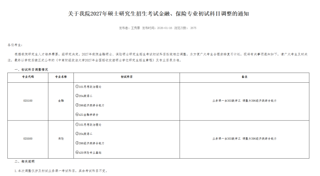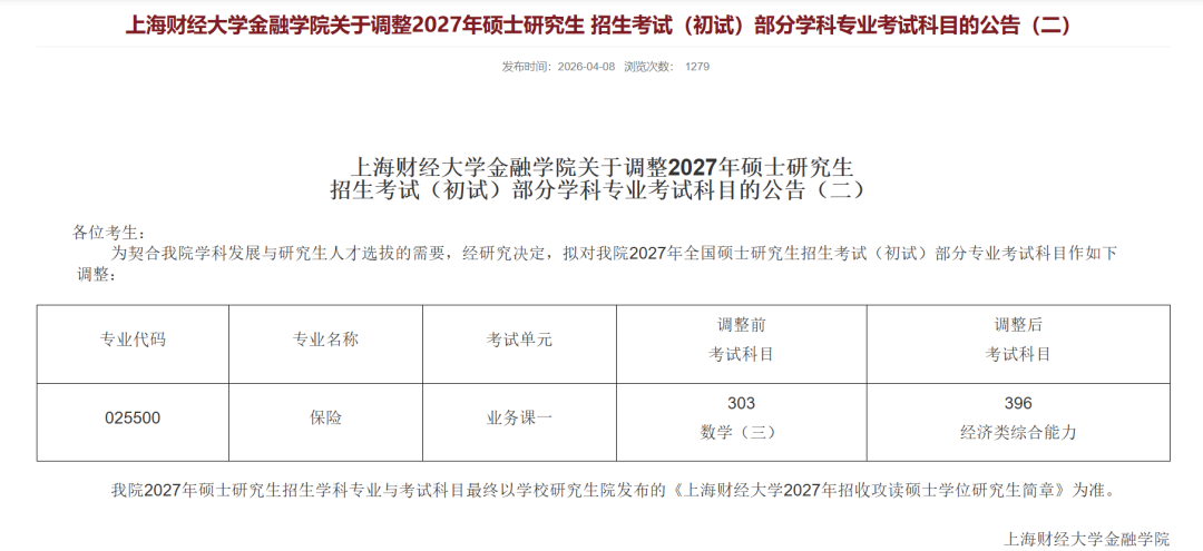 025100金融、025500保险业务课一由“303数学三”调整为“396经济类综合能力”。