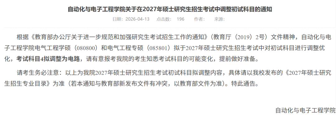 电气工程学硕(080800)和电气工程专硕(085801):初试考试科目4拟调整为电路