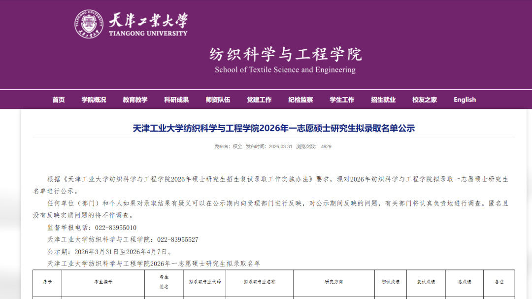 研究生院官网→ 招生动态→《2026 年硕士研究生调剂公告 / 接收调剂缺额信息》(含缺额专业、缺额人数、调剂要求、复试规则)